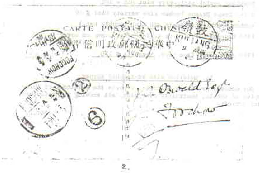 In mid-1899 a standard circular cancellation was introduced, having the town name in Chinese above and English below. (Fig. 1) Underneath, the date is expressed in the Western calendar. On a few occasions, the final figure does not represent the year but is a different indicator.
