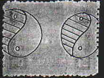 Positive identification I am currently making a study of watermarks of the Dowager issue and its surcharges. The Tai Chi watermark was introduced in China in early 1885, on the small dragon issues, to protect the stamps against forgery. Watermarks were produced in the paper manufacturing process, when the Dandy roll with Tai chi symbols rolled over the pulp, resulting in uneven thicknesses of paper. As the watermarked paper was variable in quality, this resulted in the watermark sometimes being difficult to see.