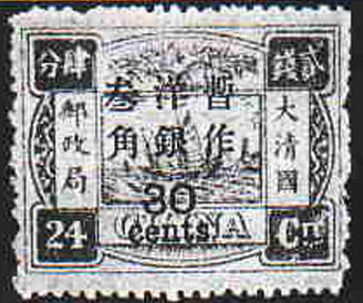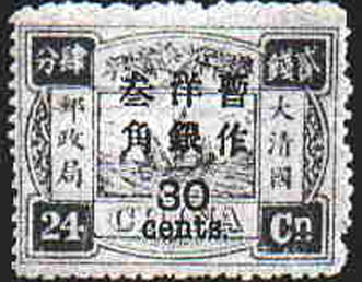 In 1896 Sir Robert Hart again took up the proposal that China should join the Universal Postal Union: his first step was to alter the currency from the old system of Taels and Candarins to the metric Dollars and Cents. On 2 January 1897 the unissued portion of the first printing was issued with overprints and surcharges in Cent values, with small Arabic figures.
