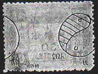 Large figures, 1.5mm, surcharged on first printing — back, with watermarks outlined in black.